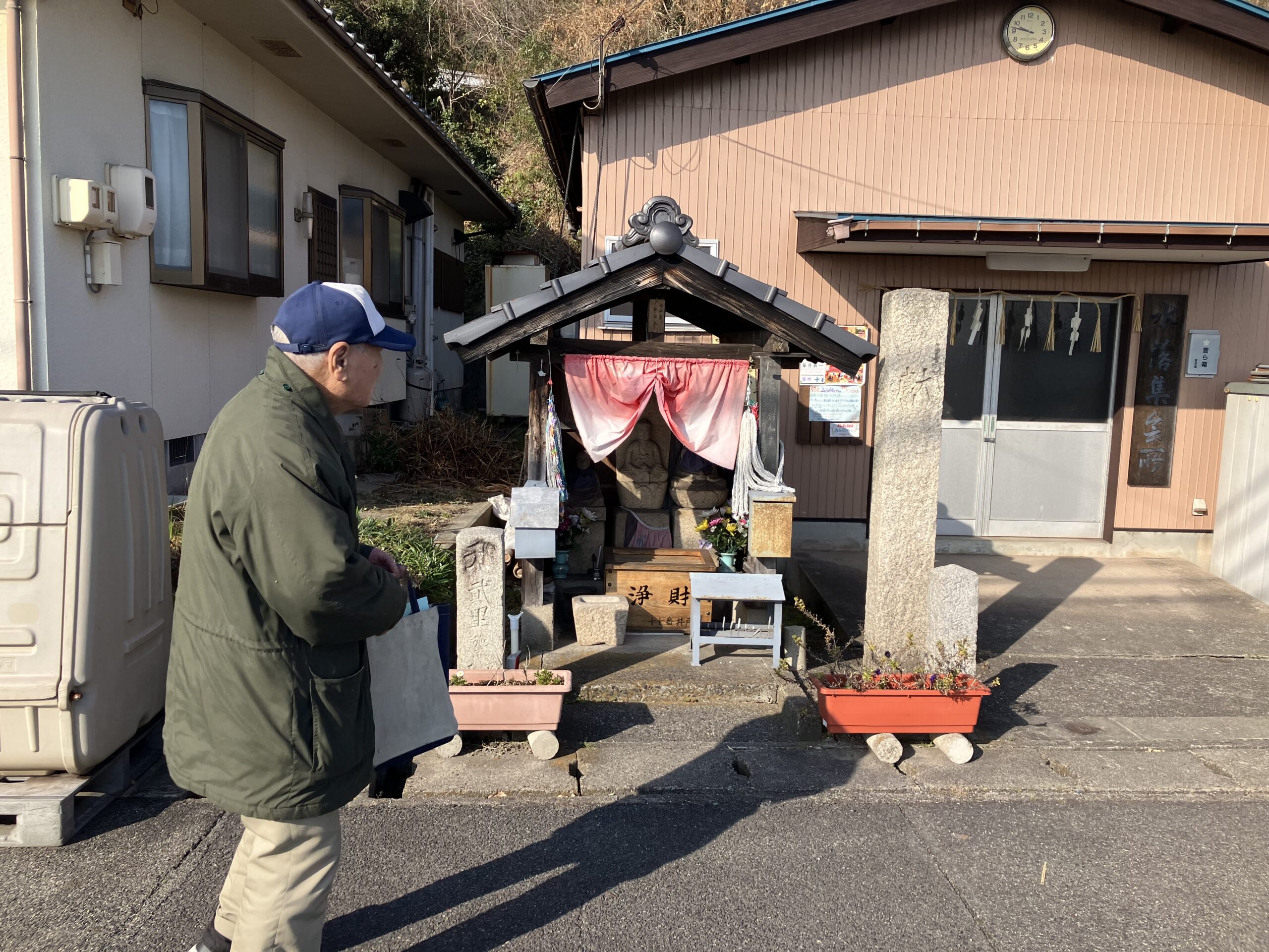 神島の海沿いに、静かに佇む「波彫地蔵」があります。