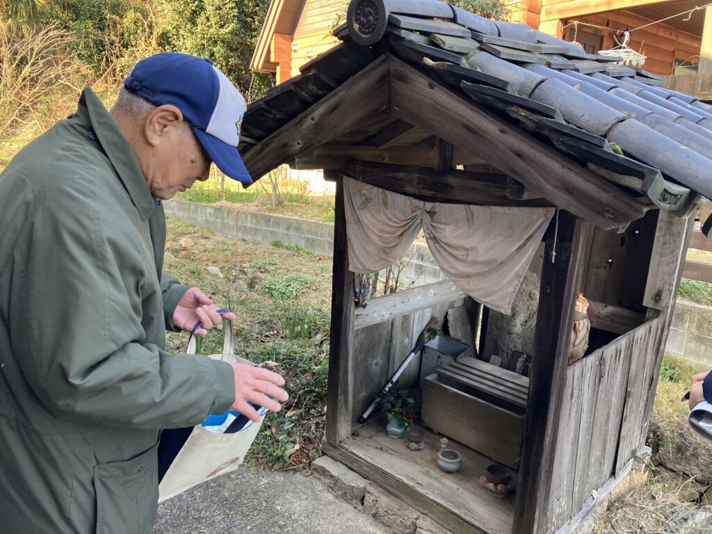 鶴林寺の登り口にある弘方寺の脇には鶴林寺「お茶堂」の跡が残っています。巡礼の人々が立ち寄り、ひと息ついた場所だったのかもしれません。祈りの道の途中で、心と体を休めるあたたかな場。今も静かに佇むその姿に、どこかやさしい面影を感じます。