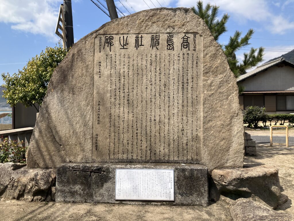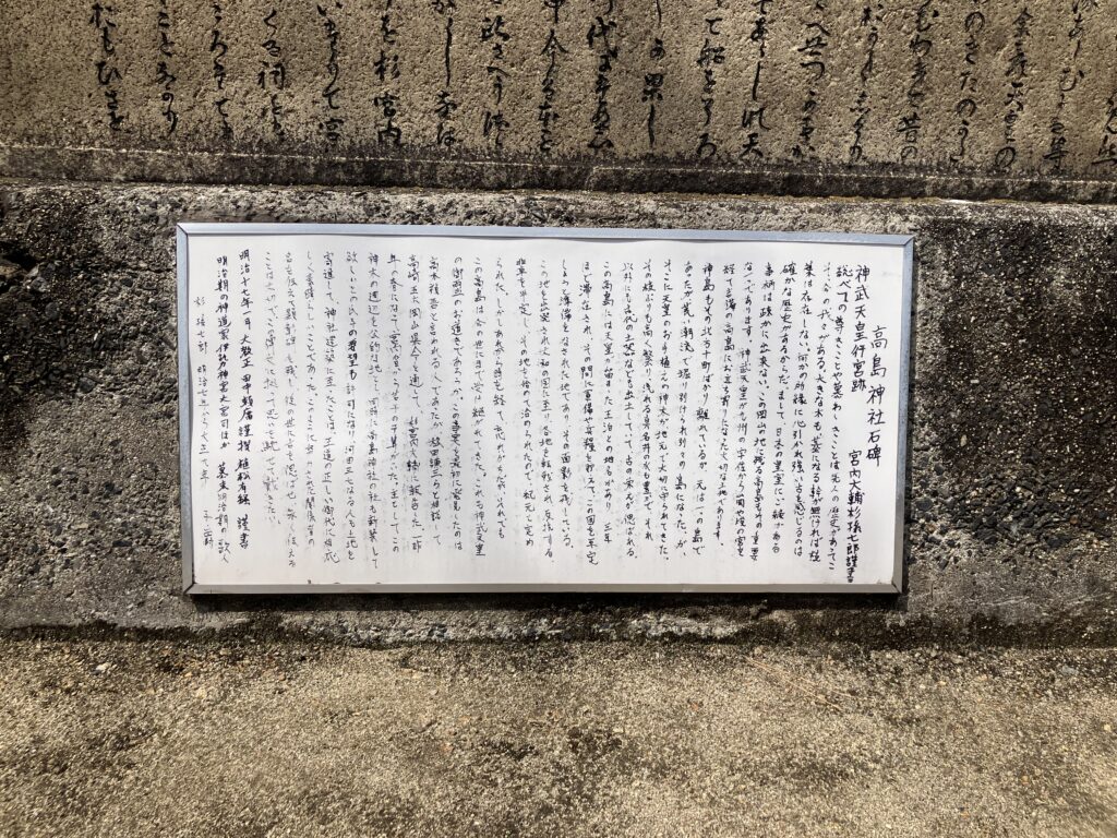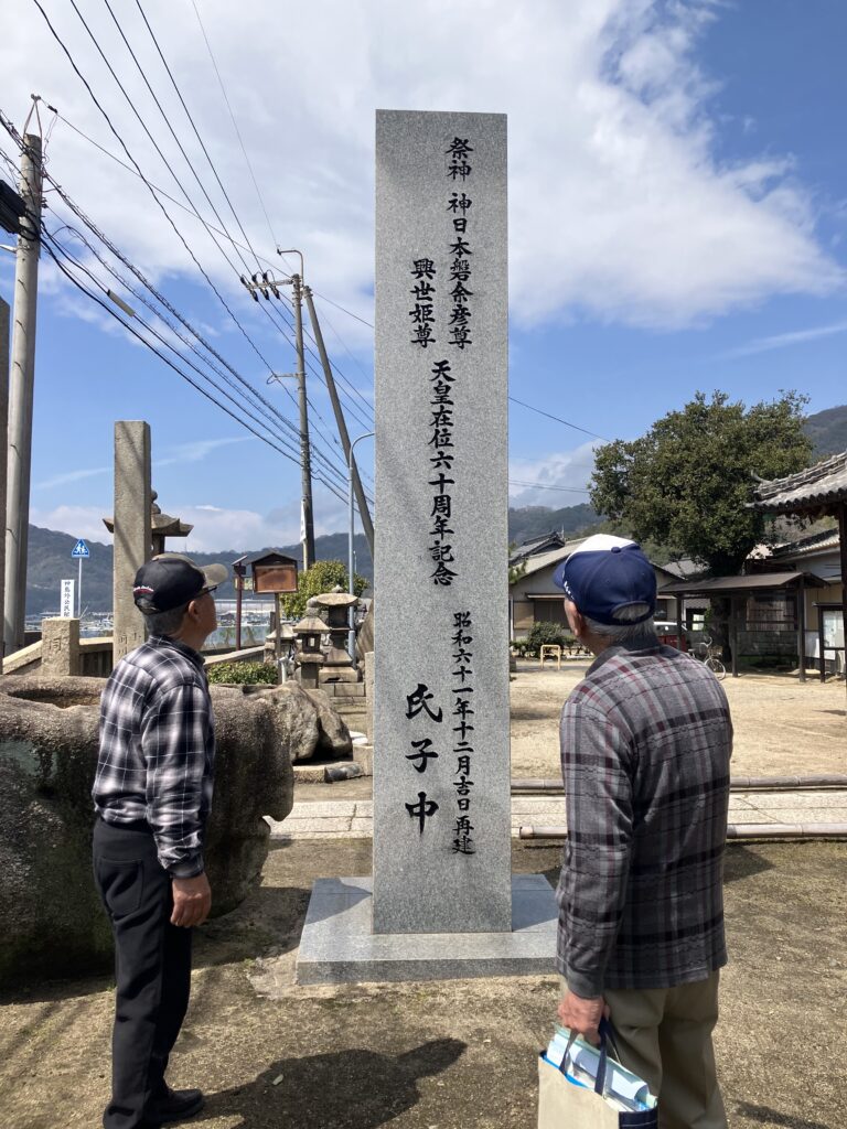 長安圭一さんのお話によると、高島と神島は、かつて地続きだったそうです。和銅年間に大きな津波があり、島は二つに分かれたそうです。また、神島はもともと「こうしま」と呼ばれており、漢字を当てる際に誤って「神島」となった可能性もあるそうです。さらに、神武天皇が滞在した場所は、この神島だったのではないか――。このように、この地には高島伝説としてさまざまな言い伝えが今も語り継がれています。